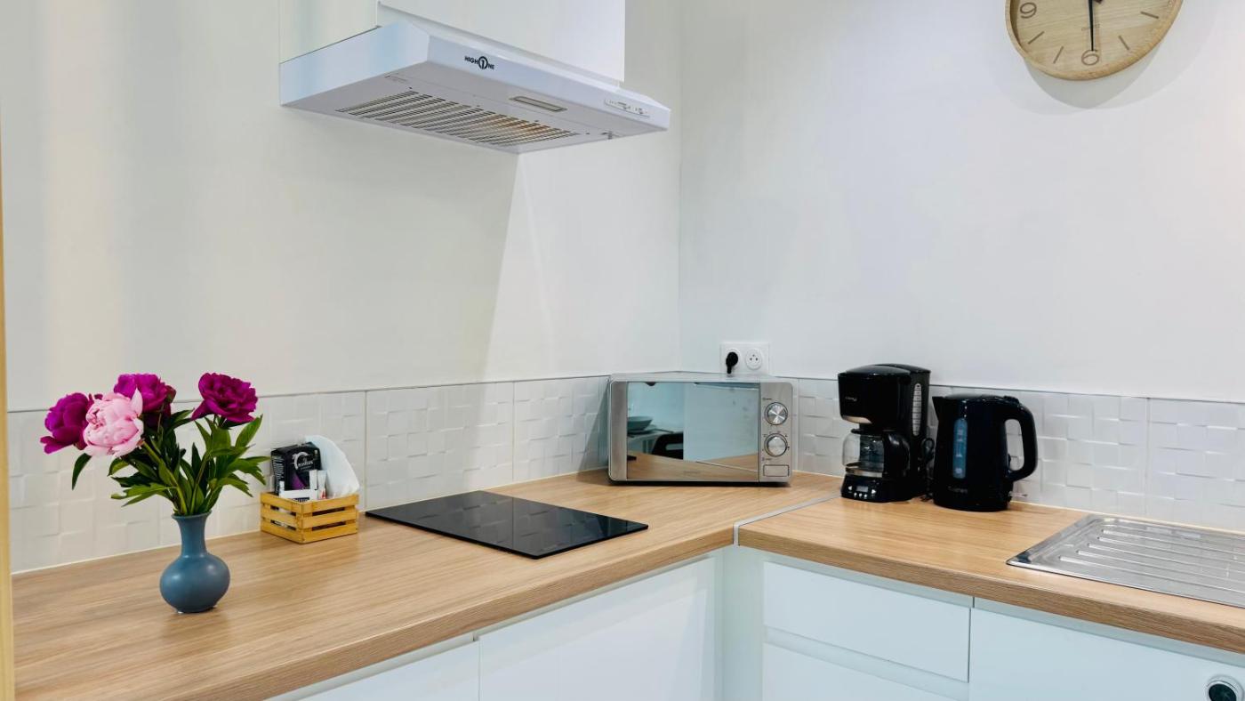 Appartement 1 Chambre. Featuring a private entrance, this apartment also comprises 1 bedroom, a seating area and 1 bathroom with a shower and a hairdryer. In the kitchen, guests will find a stovetop, a refrigerator, kitchenware and a microwave. The apartment is equipped with a washing machine, a coffee machine, a dining area as well as a dressing room. The unit offers 1 bed.