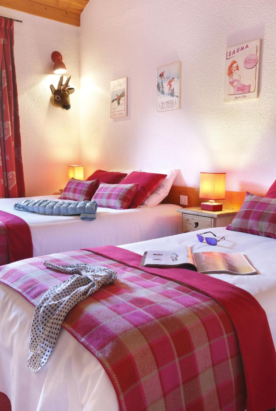 Chambre Triple. Cette chambre triple possédera 3 lits simples ou 1 lit double en plus de 1 lit simple. Vous pourrez profiter d’une vue sur les montagnes environnantes et les traditionnels toits en ardoise de Valmorel. ;