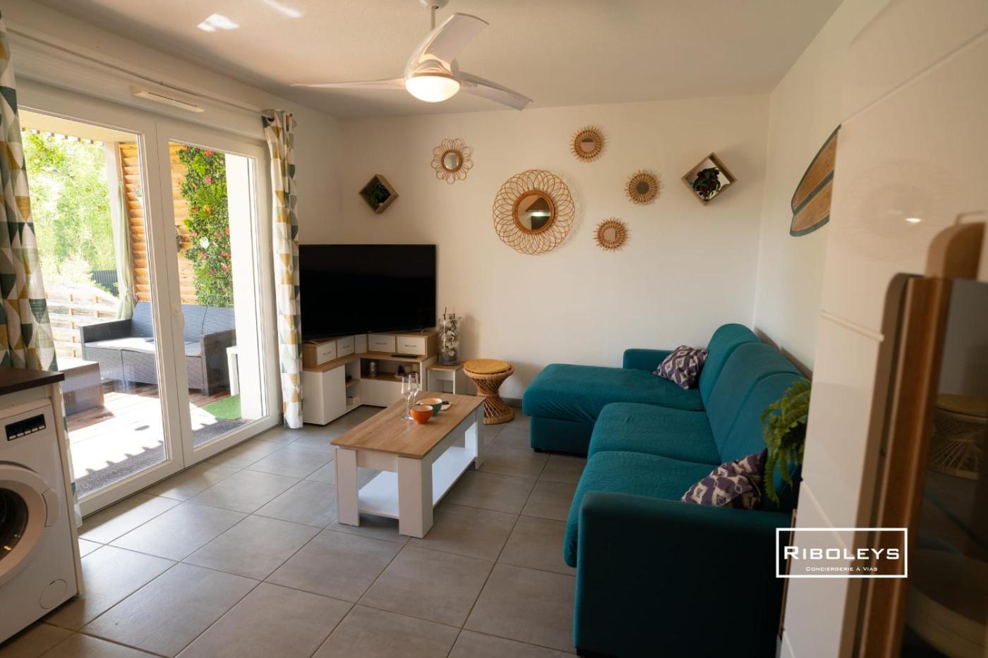 L’hébergement Riboleys - T2 avec clim wifiI et piscine se trouve à Vias, à proximité de ce lieu d’intérêt : Plage du Libron. Il vous accueille également à 10 km de : Aqualand Cap dAgde. L’hébergement propose un balcon avec une vue sur la ville, une piscine extérieure ouverte en saison et un jardin. Cet hébergement en bord de mer met à votre disposition une terrasse, une table de ping-pong, un parking privé gratuit et une connexion Wi-Fi gratuite.