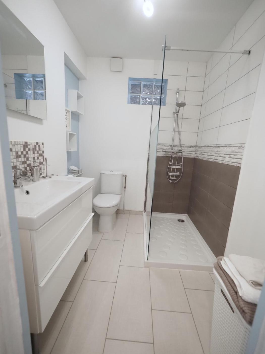 Appartement 1 Chambre. Boasting a private entrance, this apartment also includes 1 bedroom, a seating area and 1 bathroom with a shower and a hairdryer. In the well-equipped kitchen, guests will find a stovetop, a refrigerator, a dishwasher and kitchenware. Featuring a terrace with city views, this apartment also offers a washing machine and a flat-screen TV. The unit has 2 beds.