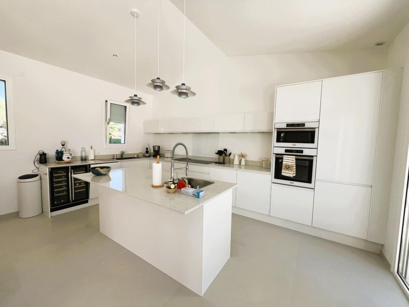 Cette villa avec climatisation se compose de 4 chambres, dun salon, dune cuisine entièrement équipée avec un lave-vaisselle et une machine à café, ainsi que de 3 salles de bains avec une douche et un sèche-cheveux. Des serviettes et du linge de lit moyennant des frais supplémentaires.