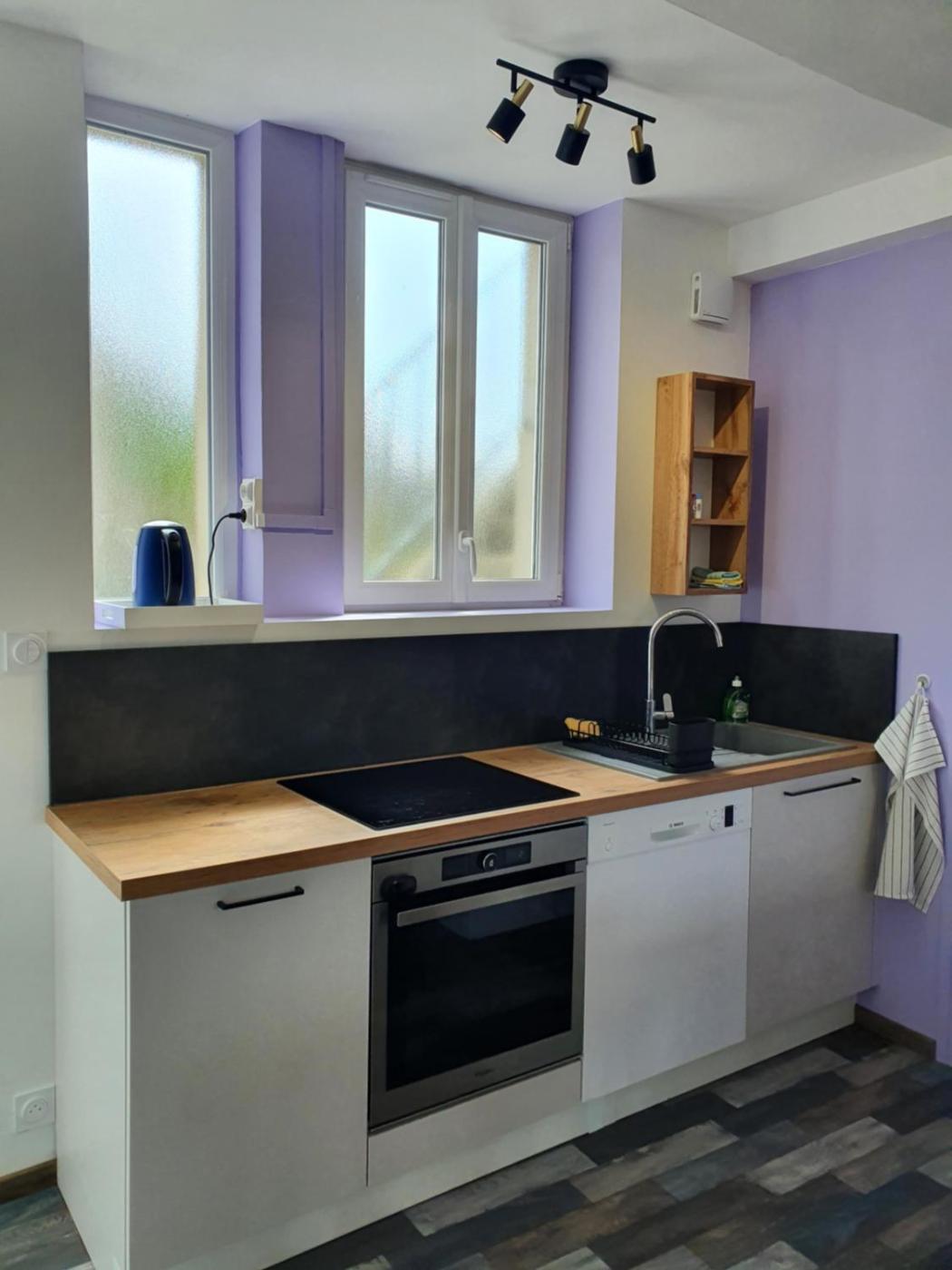 Appartement 1 Chambre. Guests can make meals in the kitchen that has a stovetop, a refrigerator, a dishwasher and kitchenware. The apartment features a flat-screen TV with cable channels, a private entrance, a coffee machine, a dining area as well as garden views. The unit has 2 beds.