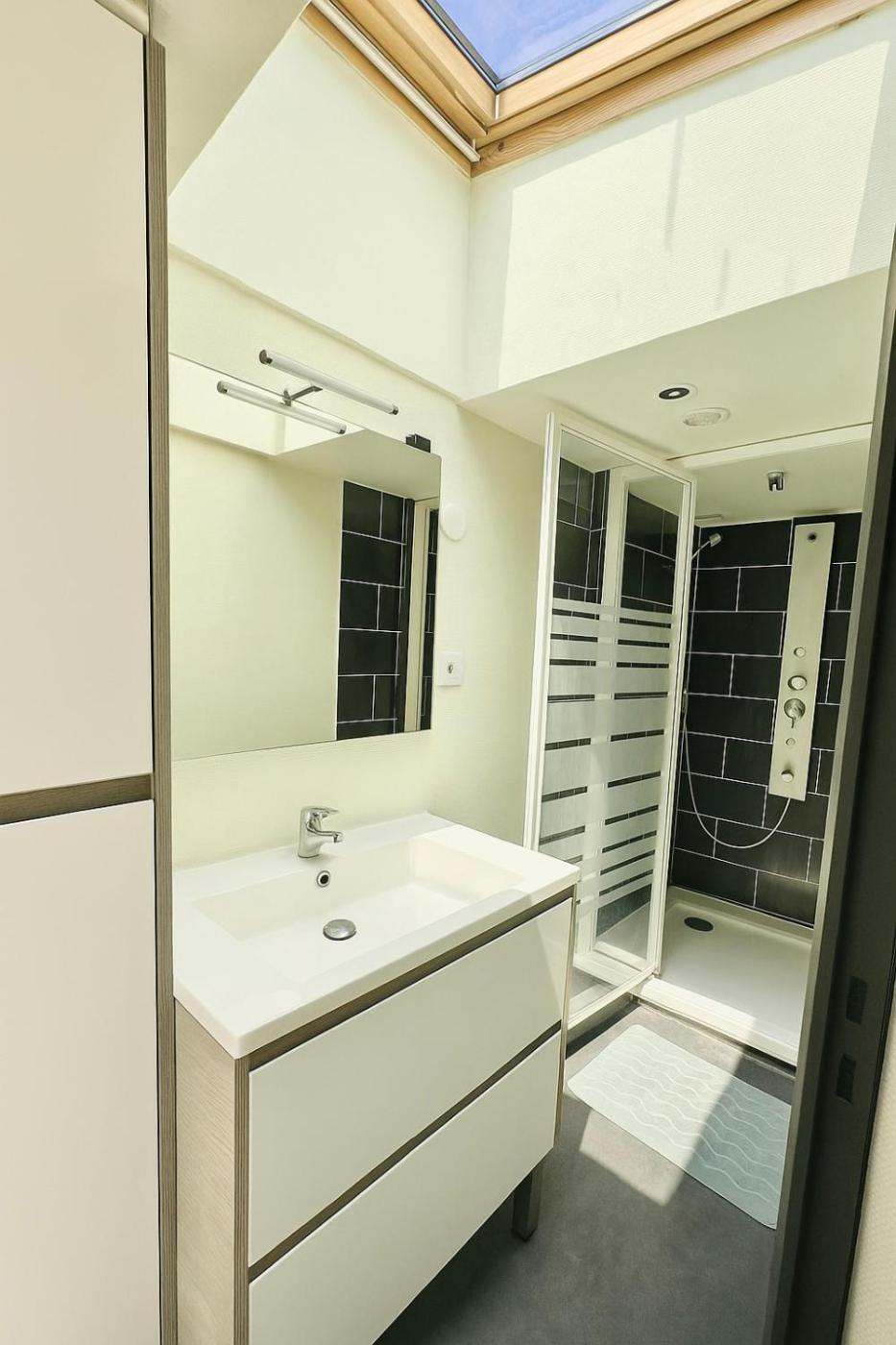 Appartement 1 Chambre. The apartment has 1 bedroom, 1 bathroom and a kitchen. The apartments kitchen is available for cooking and storing food. The apartment features a washing machine and heating. The unit has 1 bed.
